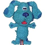 It's Blue! Our Blue's Clues Pull String Pinata is a great party activity and doubles as a fun decoration. Our Blue Pinata is easy to use, measures approximately 16" wide and 18" tall and features pink, yellow and white ribbons for pulling. Fill with treats of choice (not included) such as wrapped candies or small soft toys, and hang from a sturdy support with a strong rope. Guests take turns pulling ribbons until one ribbon opens the hidden door and releases the goodies. Our pull string pinata is a fun and safe alternative to traditional pinatas.